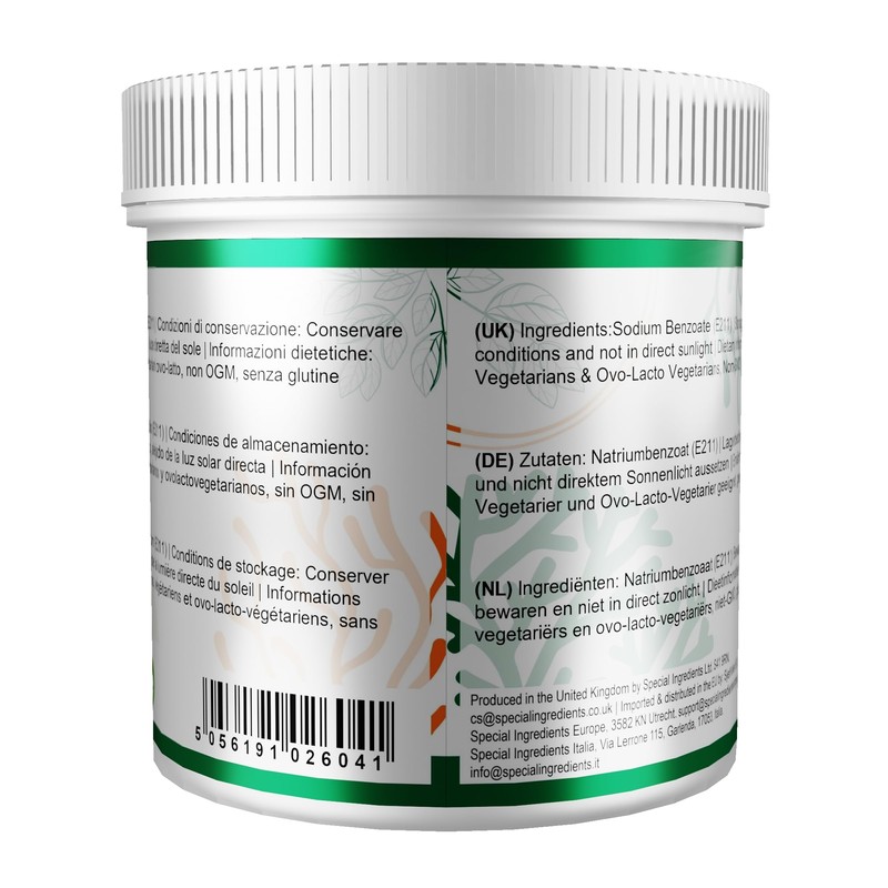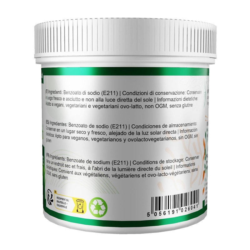Sodium Benzoate Powder - Suitable for Vegans & Vegetarians, Non-GMO, Gluten-Free, Non-Irradiated - Recyclable Plastic Container (100g)