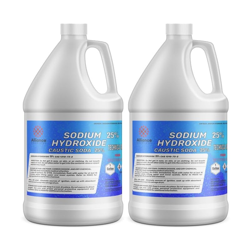 Sodium Hydroxide 25% - 2 Gallons - Dual-Pack for Cleaning, Neutralization, and Water Treatment Applications