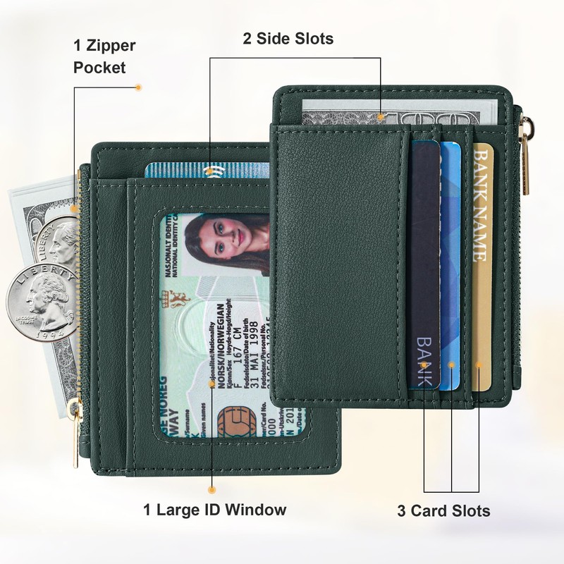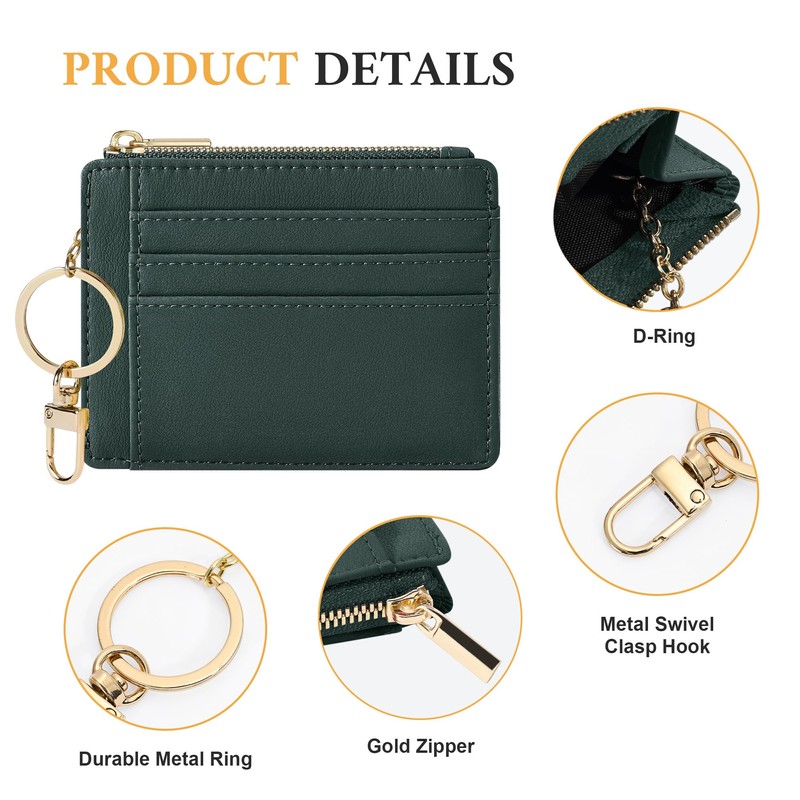 - Functional & Practical: 6 card slots, 1 outside ID window, 1 zipper pocket for cash and 1 keychain ring for you need to attach keys together