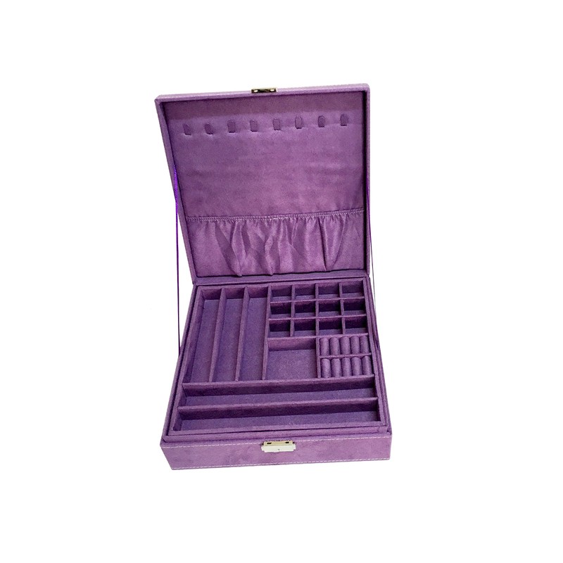 Sodynee Purple Two-Layer Lint Jewelry Box Organizer Display Storage Case with Lock