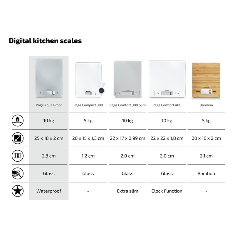 - Waterproof - the world's first digital kitchen scale with waterproof housing, for easy cleaning in the dishwasher or under running water