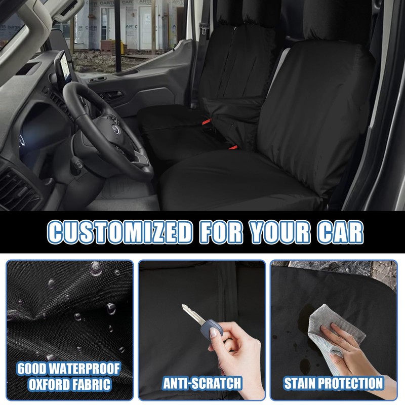Soekodu Soekodu Sitzbezge kompatibel mit Ford Transit Custom 2013-2022 (3 Sitzer), 8er-Set Wasserdichter Vordersitzschutz Schwarze Passform Set fr Vorderfahrer und Beifahrer