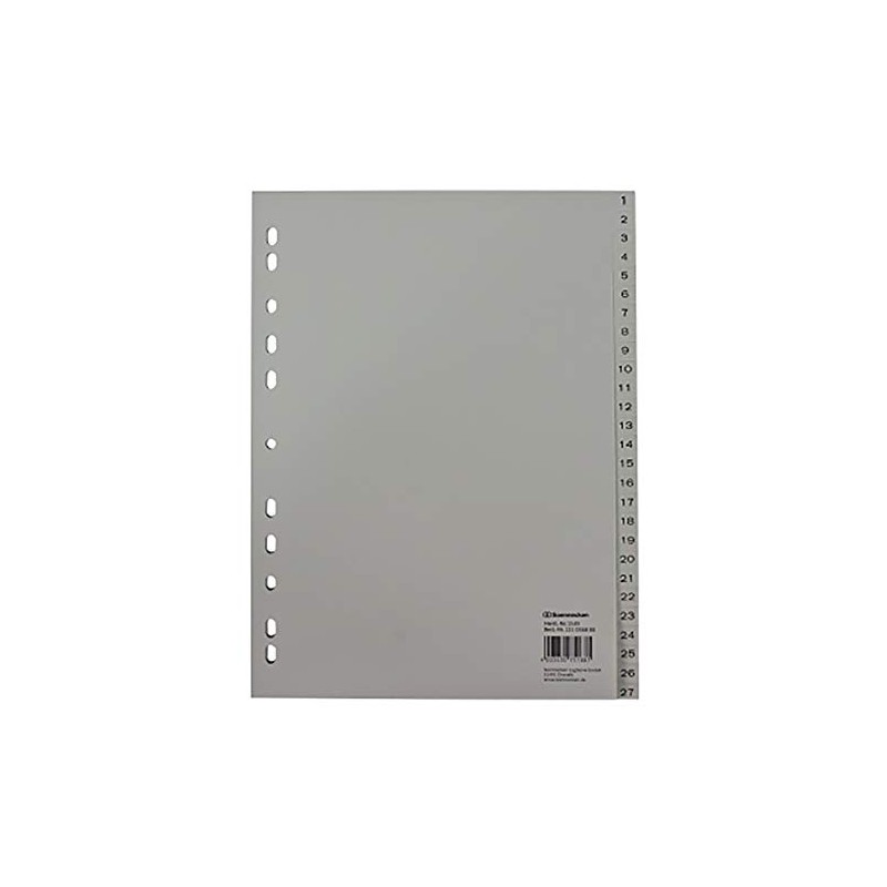 Soennecken Index 1 – 54 Full Height Graphics Card for 22.5 x 29.7 cm (W x H): A4, 11-Hole Punching, 2 Drains, Polypropylene, 0,115 mm, Grey