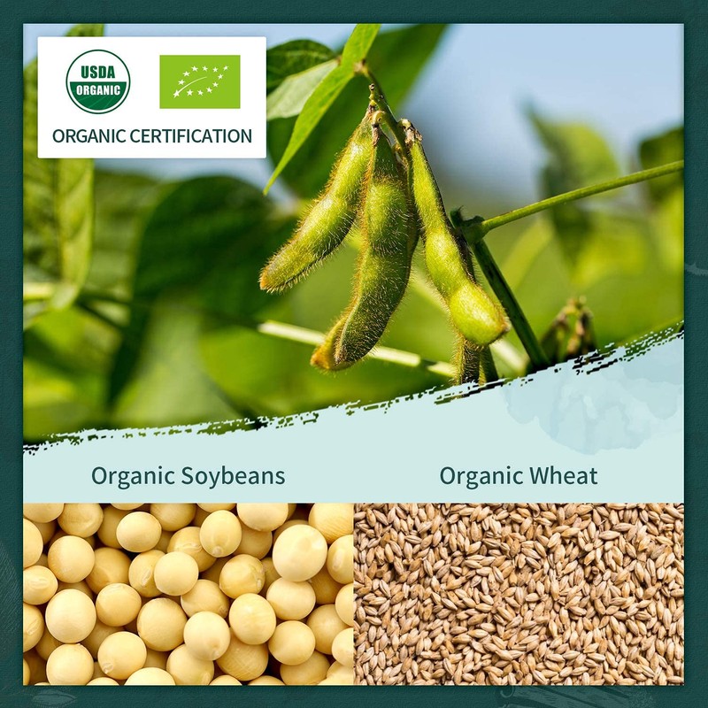 - Selected organic soybeans and organic wheat as the main raw materials.