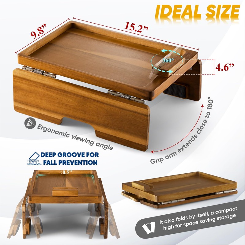 - 💡SPACE-SAVING & ANTI-SLIP DESIGN - Embrace the ultimate in convenience with our innovative clip-on sofa tray, engineered to instantly transform your sofa arm into a stable, secure tabletop. Say goodbye to bulky side tables; this compact solution is perfect for homes with limited space, including apartments, dorms, and RVs. Effortlessly attach or detach the tray with no tools, stress, or hassle. The tray also features a quick-install phone holder, enhancing your experience with minimal effort. Equipped with a non-slip mats on its underside, this tray ensures stability while protecting your sofa’s material, making it an indispensable addition to your living space.