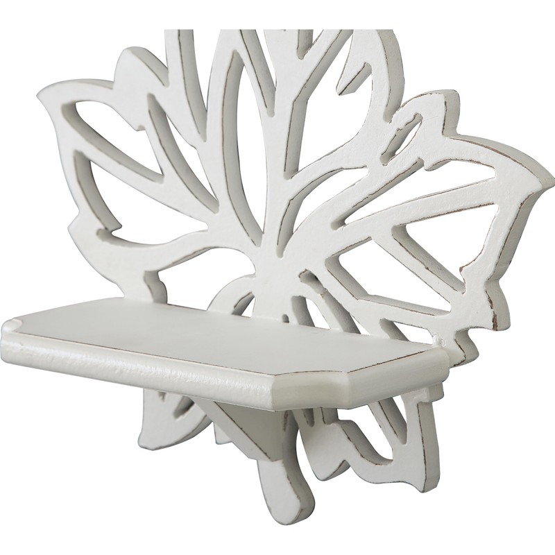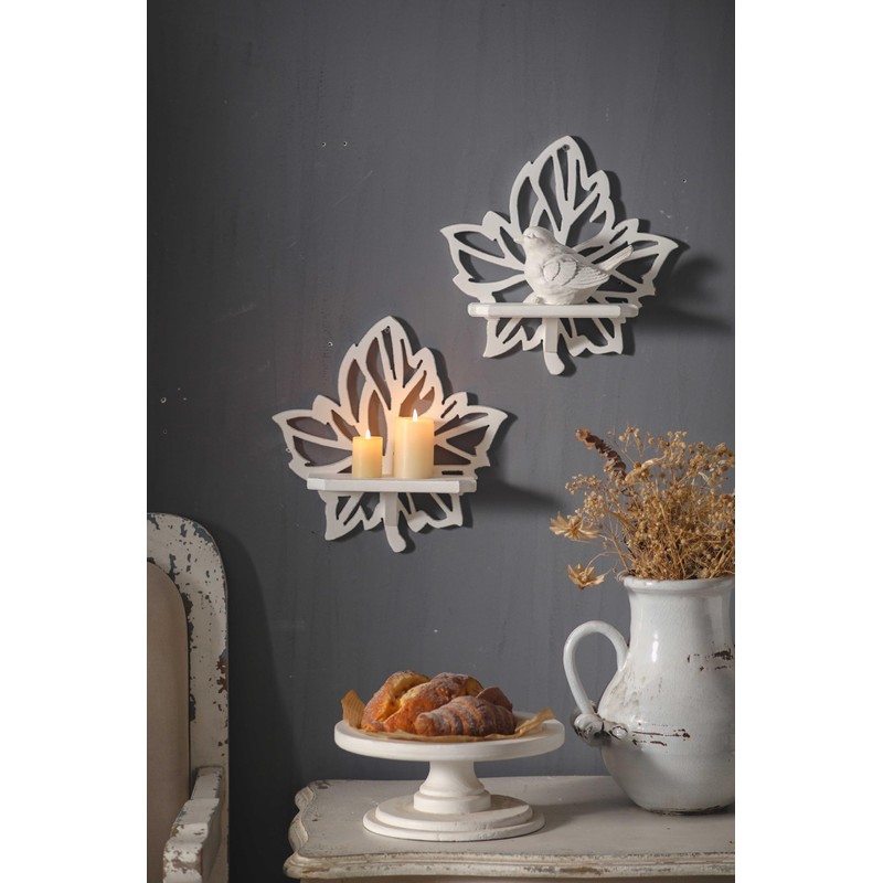 SOFE Leaf Shape Candle Wall Sconces Set of Two, White Wall Mounted Candle Holder, Rustic Wood Wall Shelves, Decorative Candle Shelf for Pillar Candles, Jars, Mini Planters, Living Room, Kitchen