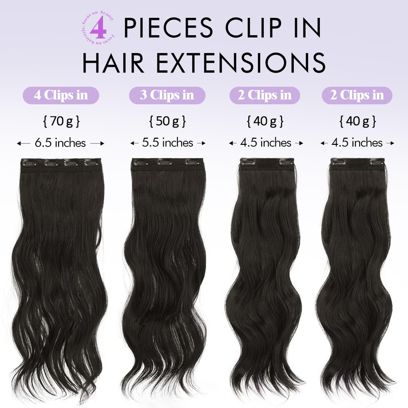 - Flexible application with 4 parts: 4. The set contains 4 pieces (1 x 16.5 cm with 4 clips, 1 x 14 cm with 3 clips, 2 x 11.5 cm with 2 clips). Adjust the number of extensions as needed to achieve the desired volume or subtle look. Ideal for individual styles.
