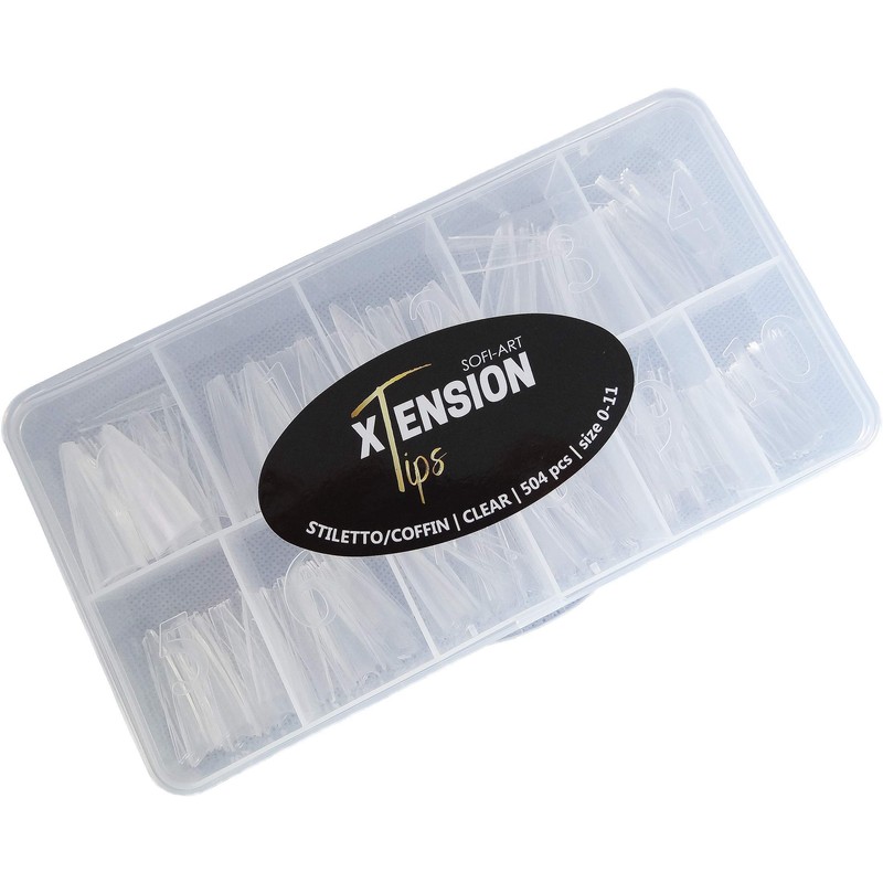 Sofi Art Xtension Nail Tips - Stiletto Coffin - Clear - 504 pcs 11 sizes