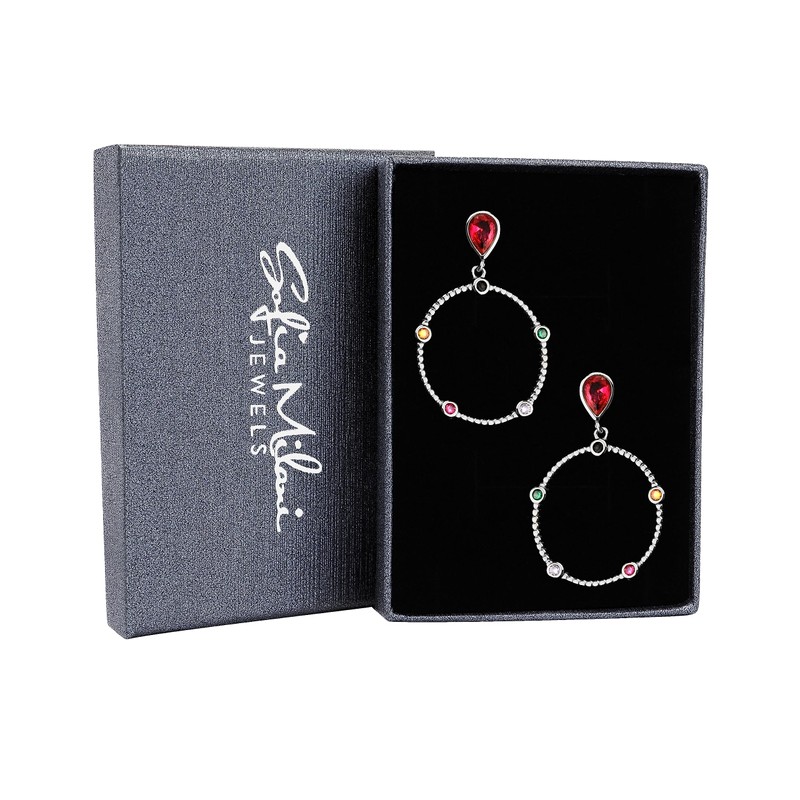 SOFIA MILANI - Women's Earrings 925 Silver with Zirconia Stones - Circle Bar Earrings, Sterling Silver, Zircon