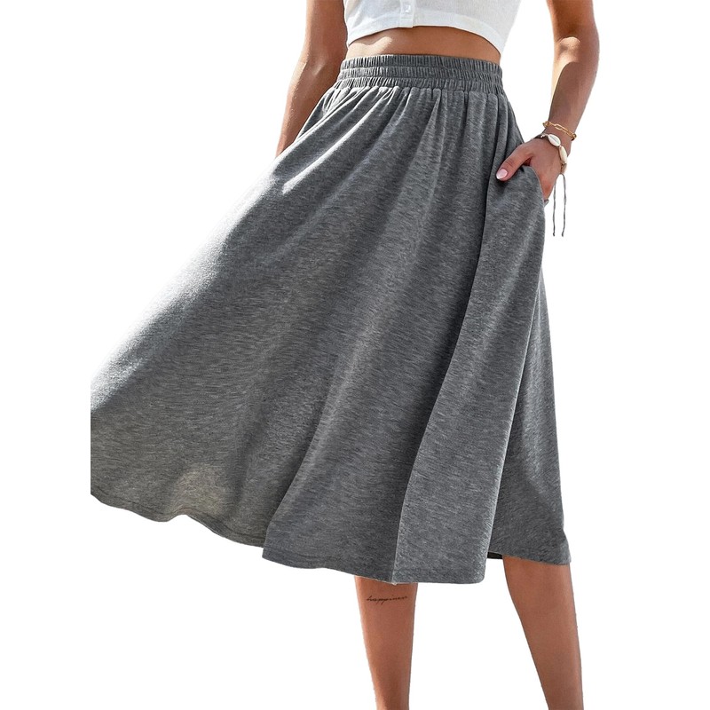 SOFIA'S CHOICE Women's High Elastic Waist Midi Skirt with Pocket A Line Swing Skirts Grey Small