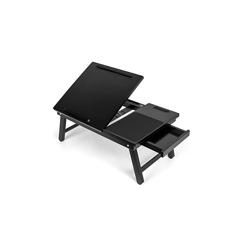 • Laptop Stand: tray table comfortably accommodates laptop computers up to 15" along with a computer mouse. Equipped with an adjustable top to keep your book or laptop computer at the perfect angle whether your using the desk sitting down or as standing desk. Integrated storage drawer for storing pens, pencils, stylus, phone, sticky notes, etc. Foldable legs for easy storage