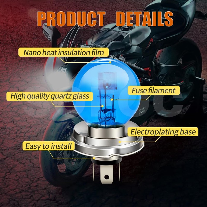 - Specifications: P45T motorcycle halogen headlight lamp. Colour: white. Voltage: 12V. Power: 45/40W Lumen: 600LM Hight beam current: 3.6A. Low beam current: 3.5A.