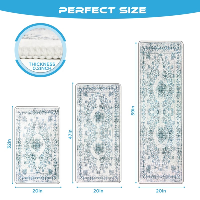 Sofort Kitchen Mats for Floor, Boho Kitchen Rugs Sets of 3, Non Slip Washable Kitchen Runner Rug, Rugs for Kitchen Floor, Hallways, Entryway, Laundry (Blue)