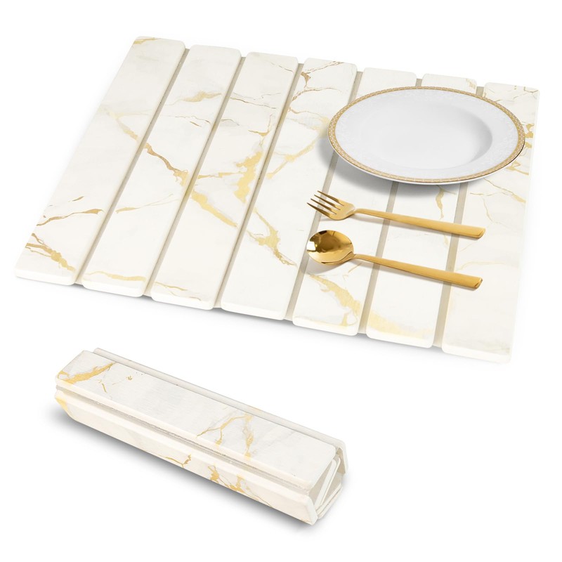 Sofort Stone Drying Mat for Kitchen Counter, Water-Absorbent Collapsible Dish Drying Mats, Gold White Marble Quick-Dry Diatomaceous Earth Mats for Dishes, Bottles (Gold white, 16*12")