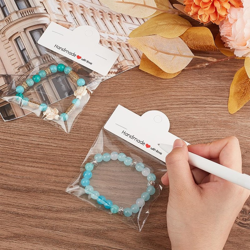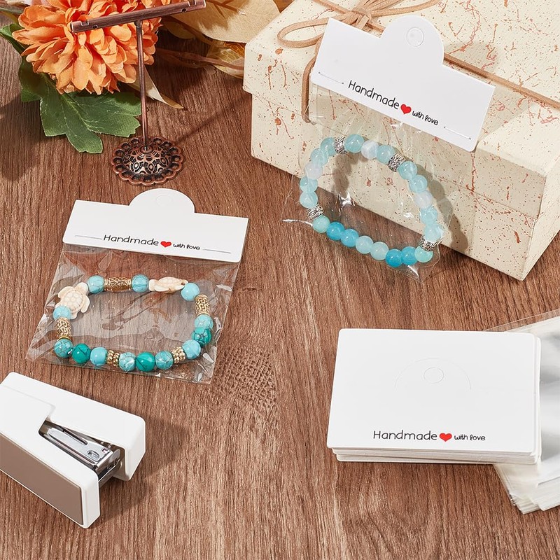 - [100Pcs Display Cards & 100Pcs Clear Bags]: You will receive 100pcs white paper display cards & 100pcs clear bags, printed word handmade with love, elevating the look. Perfect for showing jewellery, providing a professional and organized display. Sufficient quantity to satisfy personal or small business jewellery display needs.