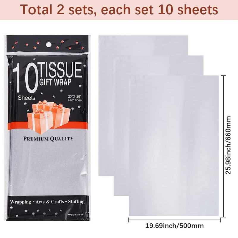 - Practical Size: The silver gift tissue paper size is about 660 x 500 x 0.01mm(25.98 x 19.69in), 20pcs in total. Sized large enough, our bulk tissue paper fits most gift bags and items of all sizes