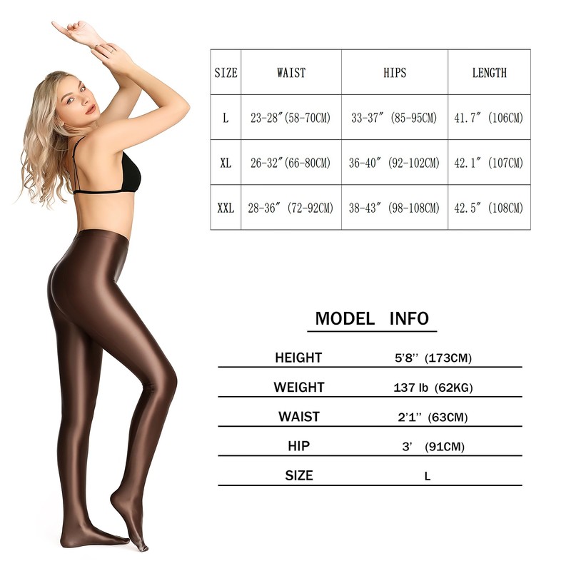 - Note: bra not included. The size of the shiny tights is a manual measurement, please allow 1 inch error. Model is wearing size L.
