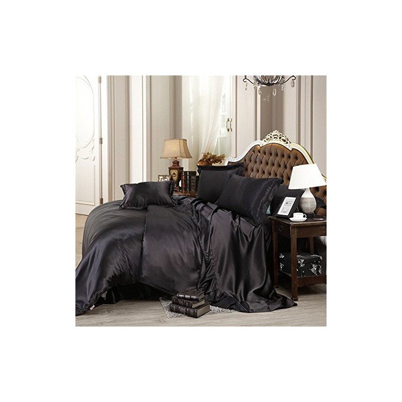 Soft and Luxurious - Duvet Insert or Stand-Alone - 400 Thread Count 1-Piece Quilted Box Stitching Comforter - 300 GSM Microfiber Fill - 100% Silk Satin Solid - (Black - Oversized King)