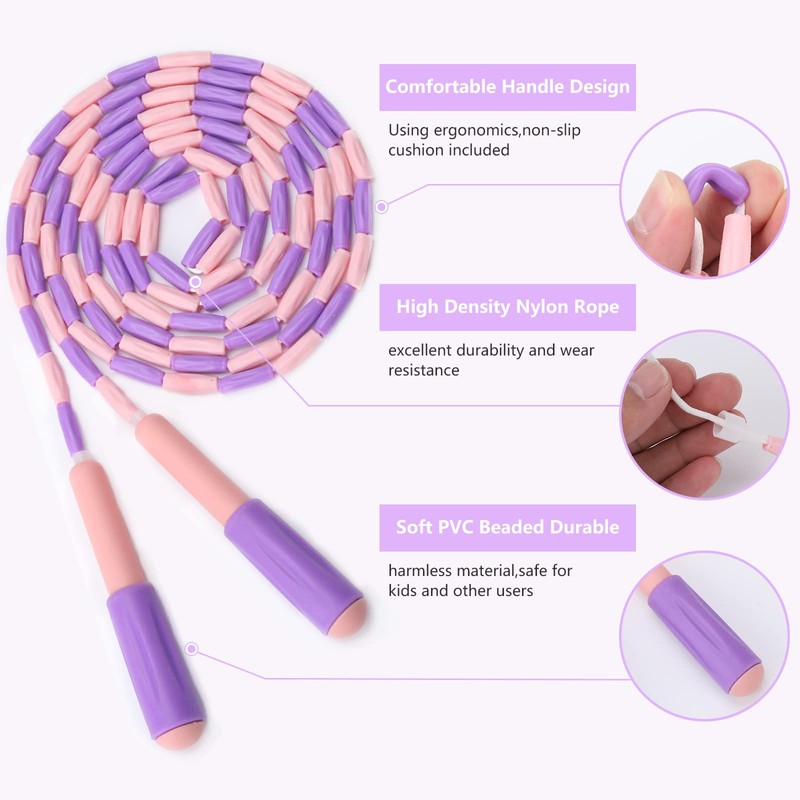 - 【Tangle-Free Safe Design】 The soft plastic beaded segmentation design, skipping rope to doesn't get tangled. Harmless material, safe for kids and other users.