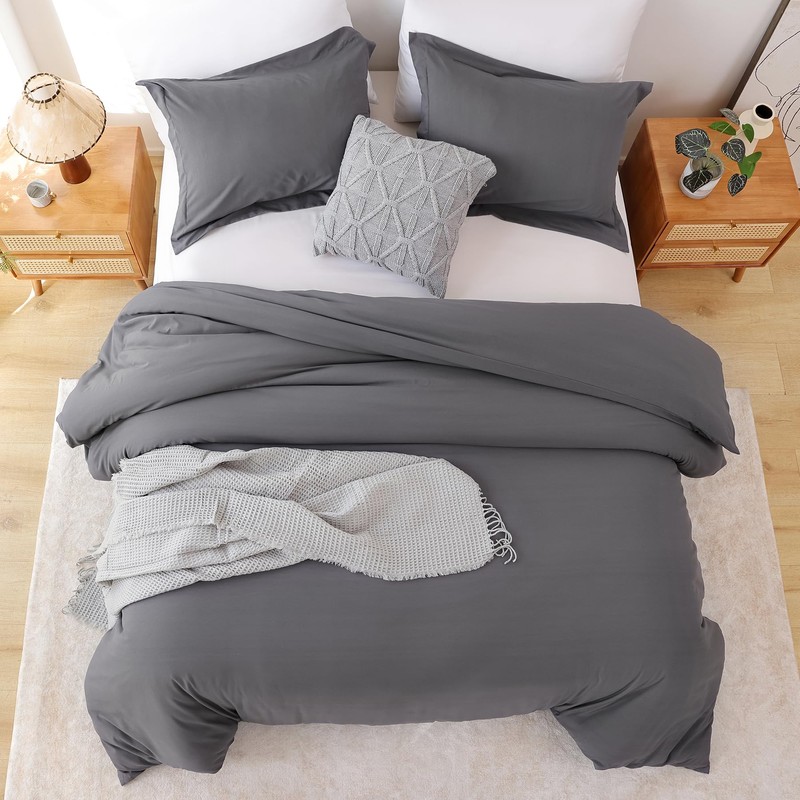 Surprisingly soft for being so budget-friendly, this microfiber duvet cover set adds a wonderful dose of cozy to any well-made bed. The silky-soft comforter cover set makes a nice choice for a kid’s bedroom, a college dorm room, or for a first-time apartment. It can even be used as a fresh set for overnight guests or as a handy backup set on laundry day.