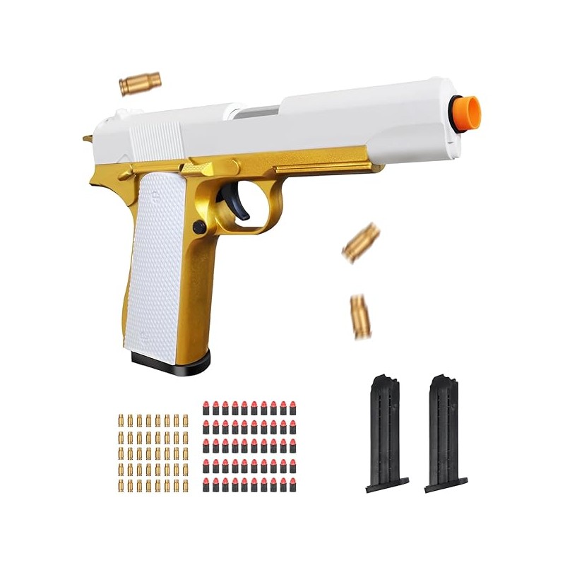 Soft Bullet Toy Gun for Boys, Toy Guns with Shell Ejecting, Toy Foam Blasters & Guns, Gift Box for Christmas Birthday for Boys Girls Adults Age 8+ Gold