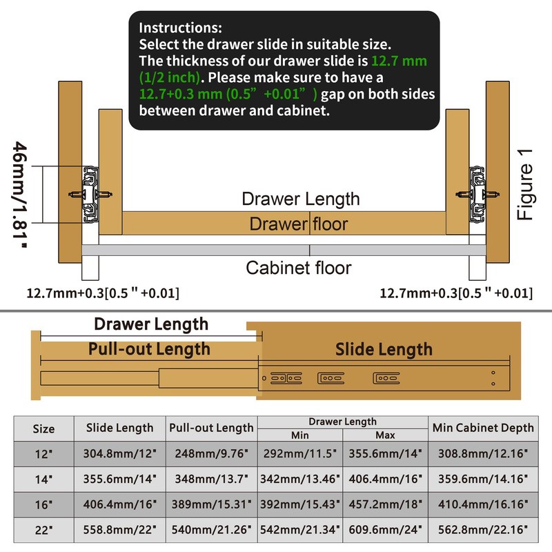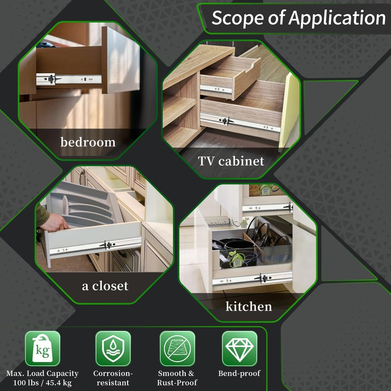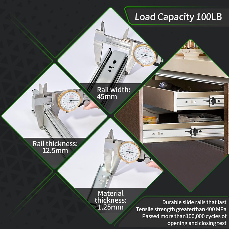 Soft Close Drawer Slides Full Extension 16 Inch Ball Bearing Drawer Slides Heavy Duty Drawer Slider Drawer Glides Side Mount Cabinet Sliders -1 Pairs