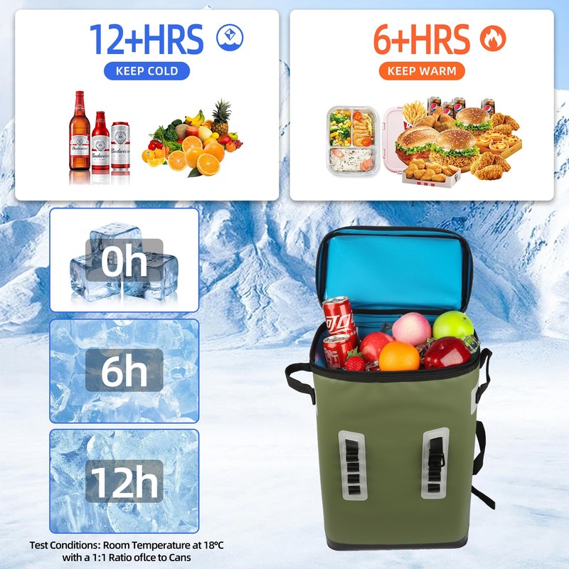 - Soft Cooler 48-Hour Ice Retention – Your Portable Freezer Anywhere: Equipped with 1-inch ultra-thick insulation walls, this backpack cooler maintains ice-cold temperatures for up to 48 hours—perfect for camping, beach trips, fishing, and outdoor adventures. Never worry about warm drinks again!