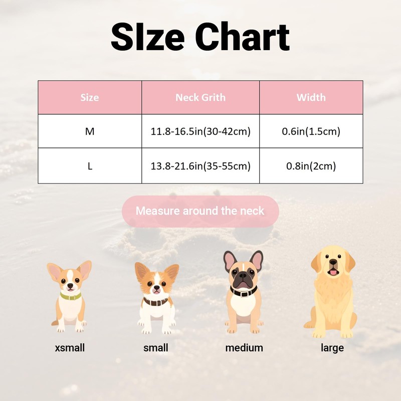 - Perfect Fit Guaranteed:Measure the circumference of your dog's neck with a soft ruler to get the most accurate measurement. Please refer to the size chart for specific sizes and make sure there is only a two-finger distance between the collar and the dog's neck.
