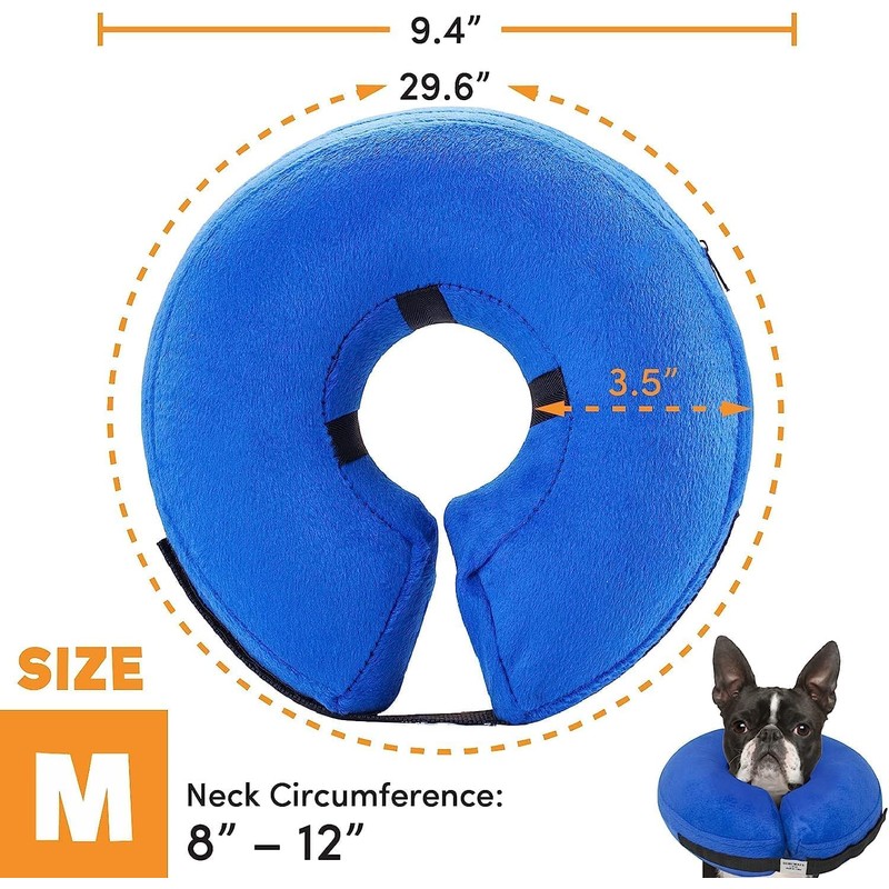 - Inflatable dog collar will allow dog or cat to avoid the restriction of vision, movement, playing, eating, drinking, or sleeping during the hеаling period. This unit is not bulky,the cover is made of soft and skin-friendly fabric that doesn’t chafe or rub the canine’s skin.