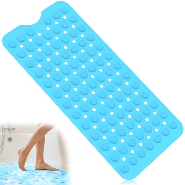 Soft Extra Large Bathtub Mat Non Slip, 35x16 Inch, Square Machine Washable Bathmats for Bathtub with Drain Holes and Suction Cup, Easy to Clean, for Bath Tub, Kitchen and Shower (Blue)