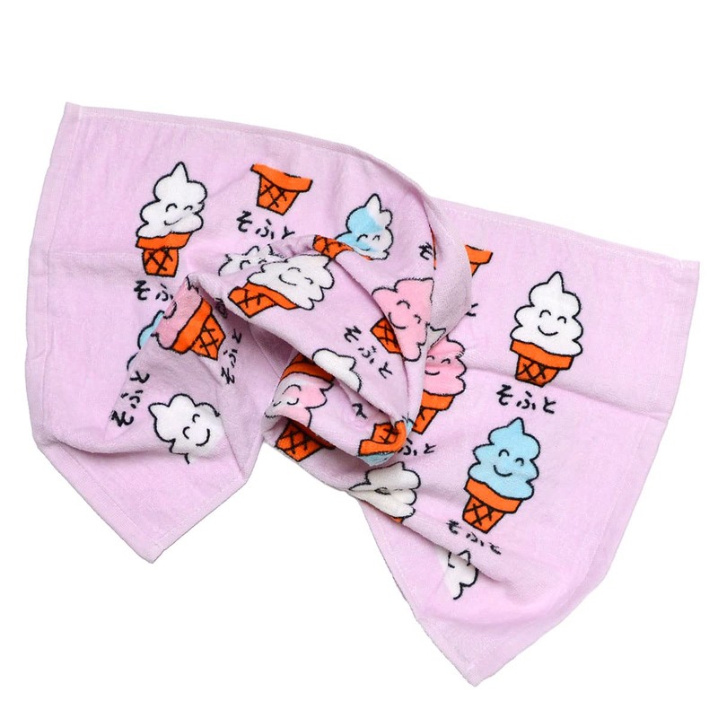 Soft Face Towel, Colorful Print, Long Towel, 13.4 x 29.5 inches (34 x 75 cm), Cotton, Cute, Drawing Series