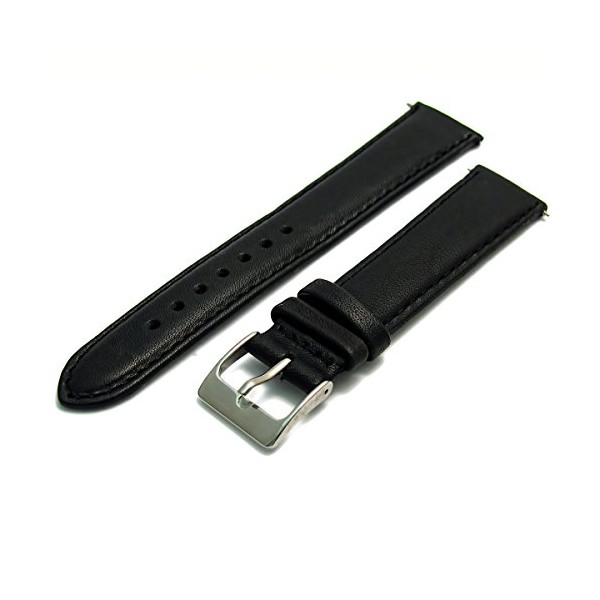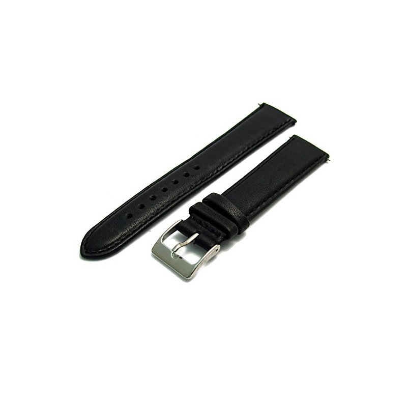 Soft Genuine Leather Watch Strap Band 20mm, Black, Chrome (Silver Colour) Buckle