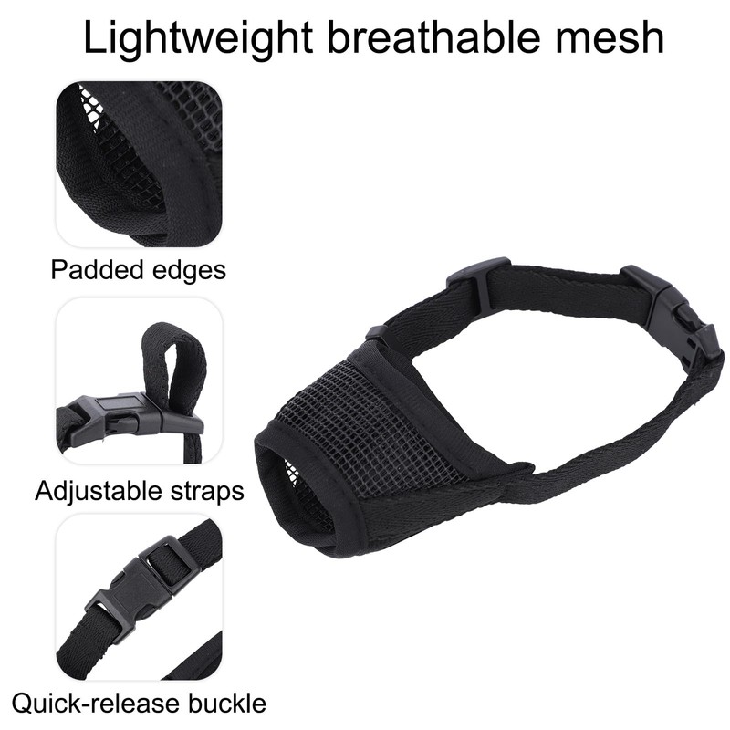 - Excellent Design: Our muzzle for dogs adopts breathable mesh design, which can let the dog breathe freely. Features an adjustable neck strap with a quick-release buckle for easy wear and take off.