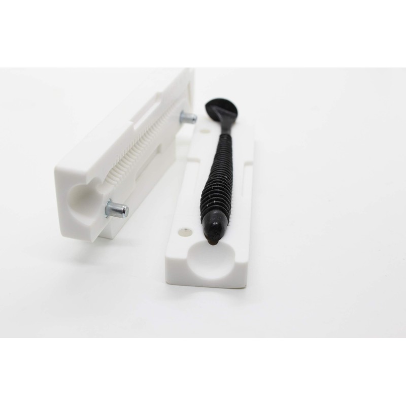 - Material: Engineered stone. Stone powder mixed with polymers to create a low-porous and durable material, which is a perfect fit for soft plastic lure moIds.