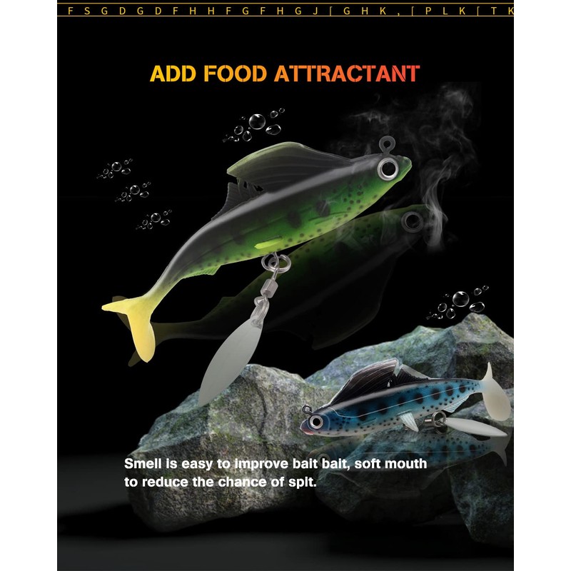 - The dorsal fin hides the hook and also prevents hook grass, branches.There is also a metal ring under the bait, can add a Treble Hook if you want