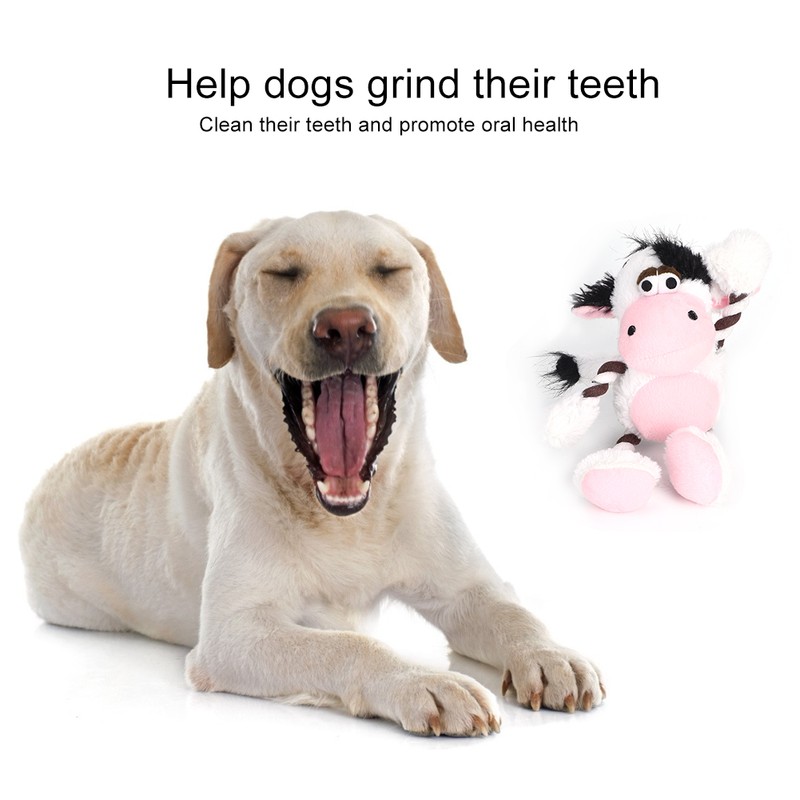 Soft Plush Pet Teeth Cleaning Protection Chewing Biting Interactive Training Toy for DogsCow