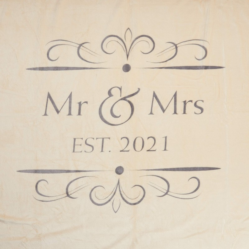 Perfect for showers, newlyweds, and engagements, this lovely throw is neutral to match any decor with the words "Mr. & Mrs." "Est. 2021". This extremely soft blanket is perfect for cuddling up with on any occasion. Add style to your space or use on chilly evenings outdoors. 100% Polyester, machine washable and beautifully hassle and shed free.