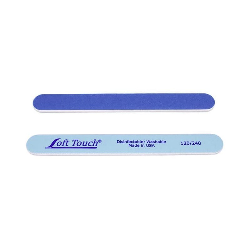 Soft Touch Nail File, Double Sided - 120/240 Grit, Light/Dark Blue, for Natural or Acrylic Nails, 7 Inch - One Piece