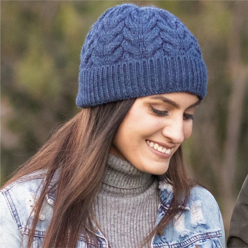 Soft women's alpaca hat made from 100% alpaca wool in 6 colours, high-quality winter knitted beanie hat by HansaFarm - Dark blue - HF236.
