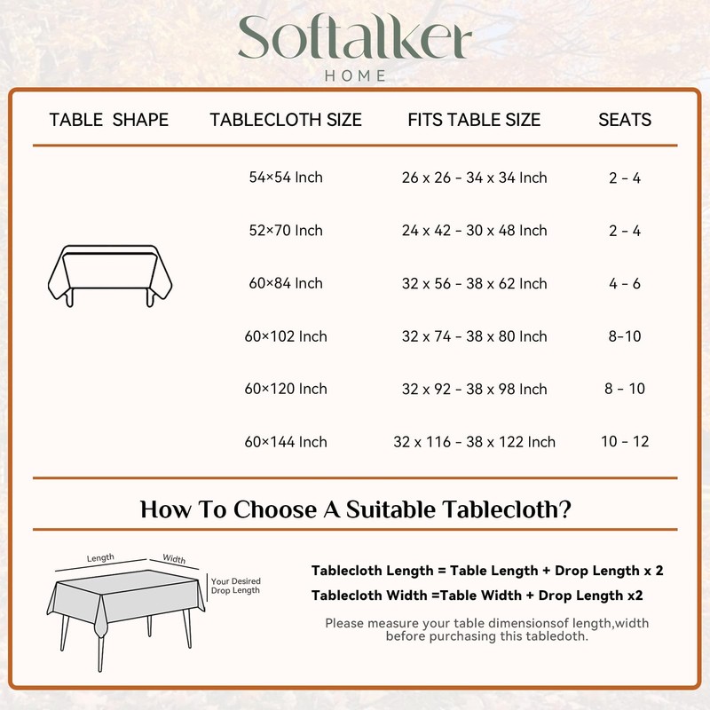- MEASUREMENTS:Each package includes 1 piece of faux linen tablecloth measuring 52 W by 70 L inch.The tablecloth size is usually larger than your table size,Suitable for 2-4 people.