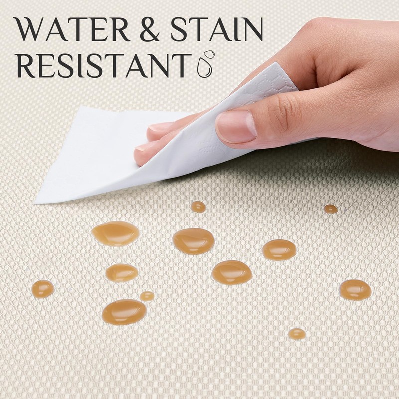 - DIRT & WATER RESISTANT This tablecloth has been carefully designed and is made of high quality ultra-thin microfibers with a weight of 210 GSM. It provides excellent dirt and water repellency and can withstand daily liquid splashes and spills. Their fine fibre structure not only prevents water drops and oil stains from entering the table surface, but also simplifies the cleaning process.