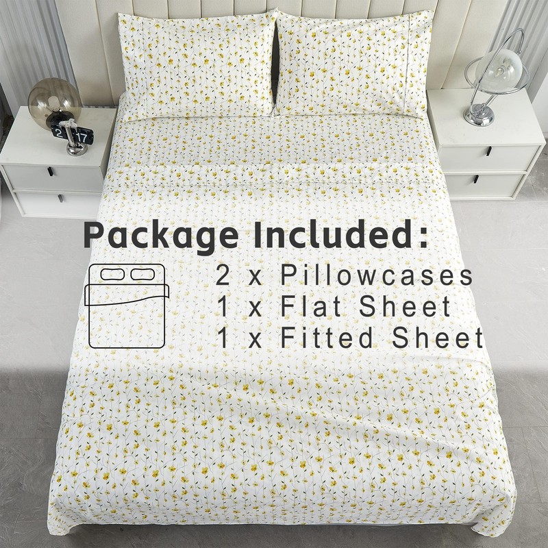 • 🌼【Quality Queen Bed Sheet Set】Our cute yellow flower queen bed sheet is made of premium ultra-soft double brushed microfiber fabric, featuring breathable & soft .Wrap yourself with our bed sheet for a comfortable sleep every night for years to come!
