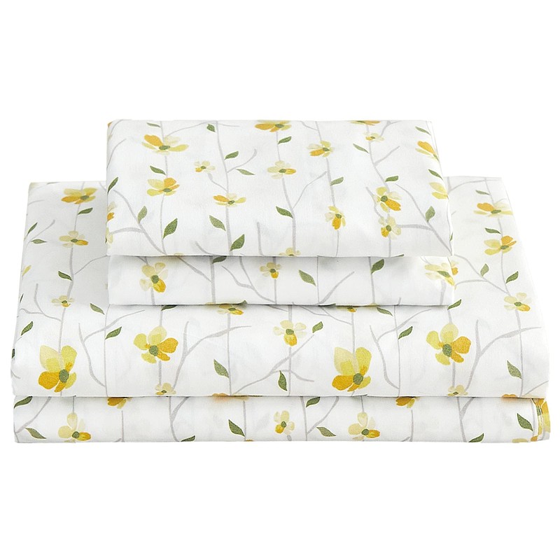 Softan Yellow Floral Sheets for Queen Size Bed Printed Bed Sheets - 4 Piece S...