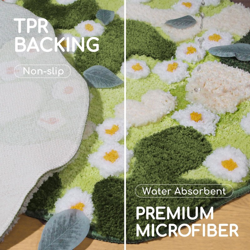 - Plush Soft Micorfiber:Our moss bath mat crafted from ultra-soft microfiber for a cloud-like feel. Whether stepping out of the shower or waking up in the morning, the cushiony touch of this bathroom rug offers unmatched comfort, making every step a delight.
