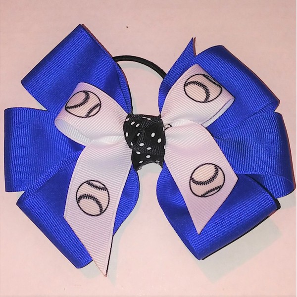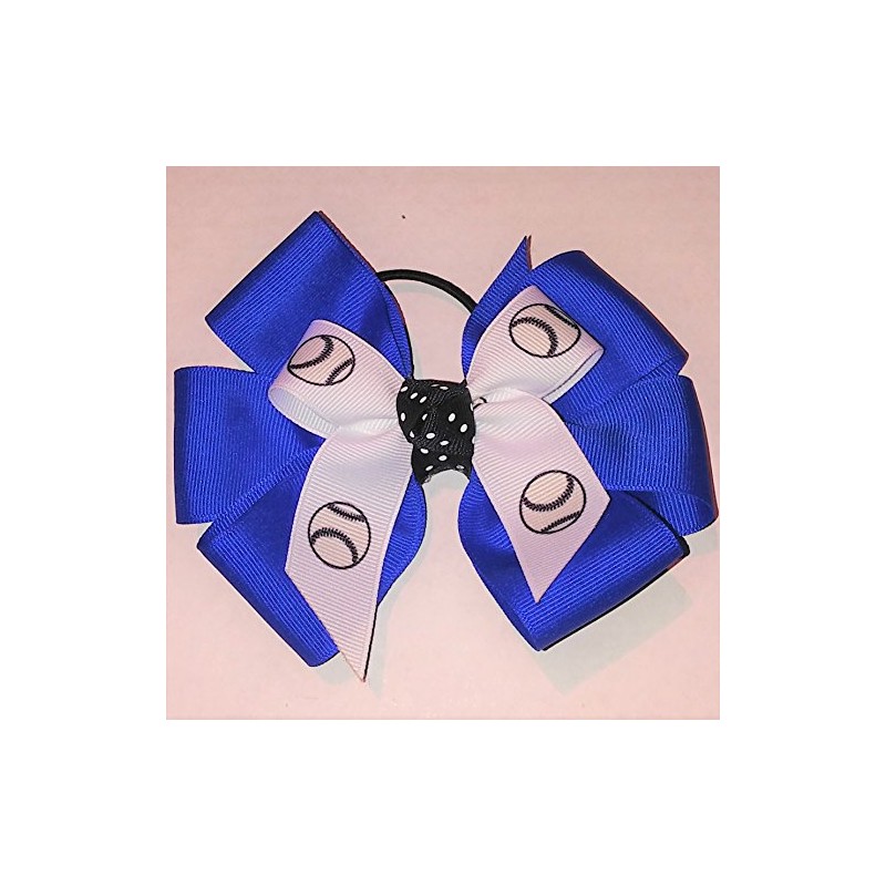 Softball Hair Bow with six Loops, Royal, White Pony Band