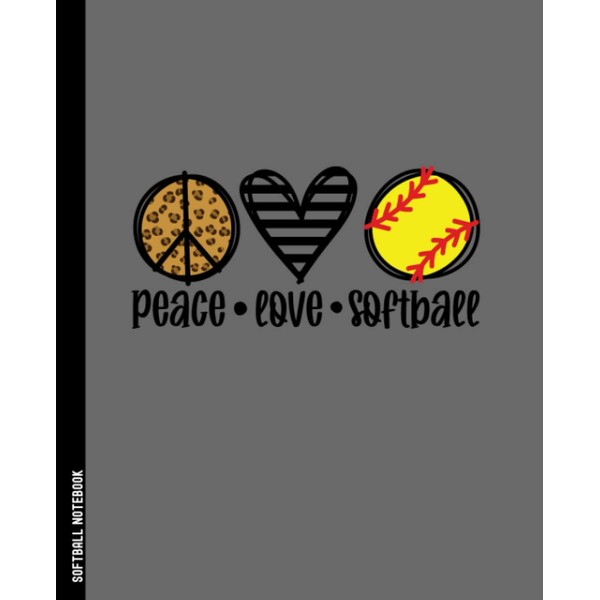 Softball Notebook Peace Love Softball: Softball Player Composition Journal Notebook | 110 College Ruled Pages | 7.5 x 9.25 in. | Gray