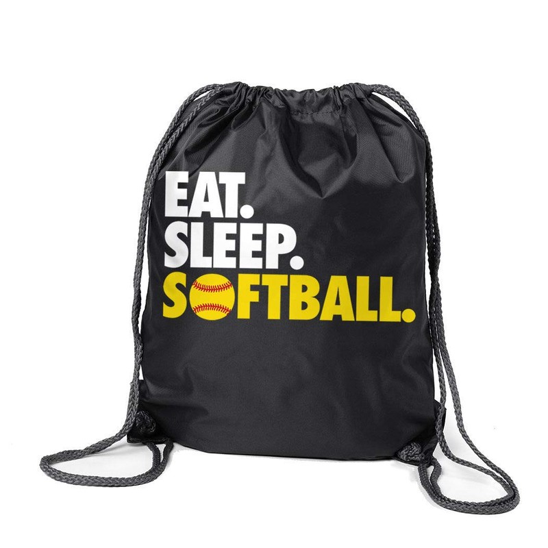- POPULAR DESIGN! This Eat. Sleep. Softball. cinch sack features one of our most popular softball designs so that you can proudly display your love for the sport, no matter where you go! This versatile cinch sack can be worn as a backpack, carried over the shoulder, or held by the tough and sturdy drawstrings, giving you endless options to carry your awesome new softball bag!
