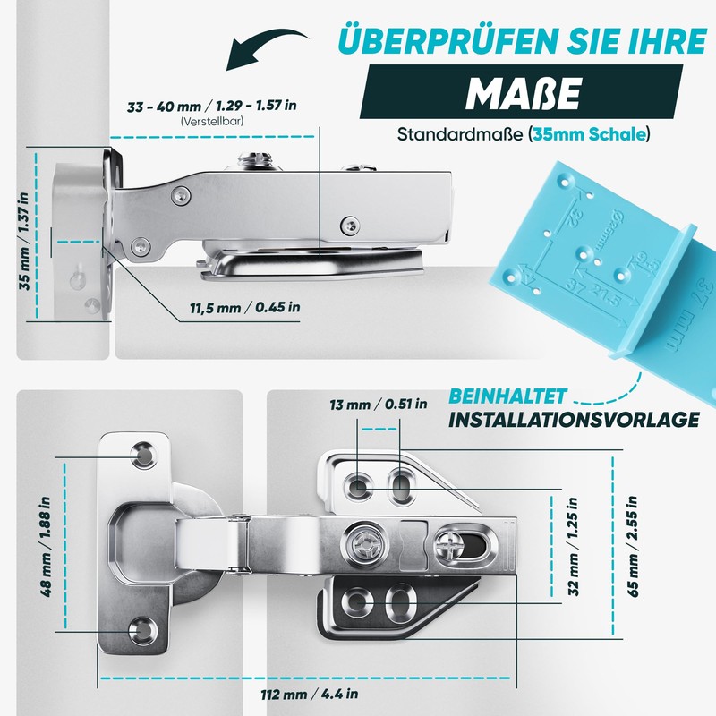 - High durability – are you looking for hinges that last an eternity? With 20% more thickness than usual, these hinges are synonymous with resilience. Up to 1.2mm thickness made of stainless steel.