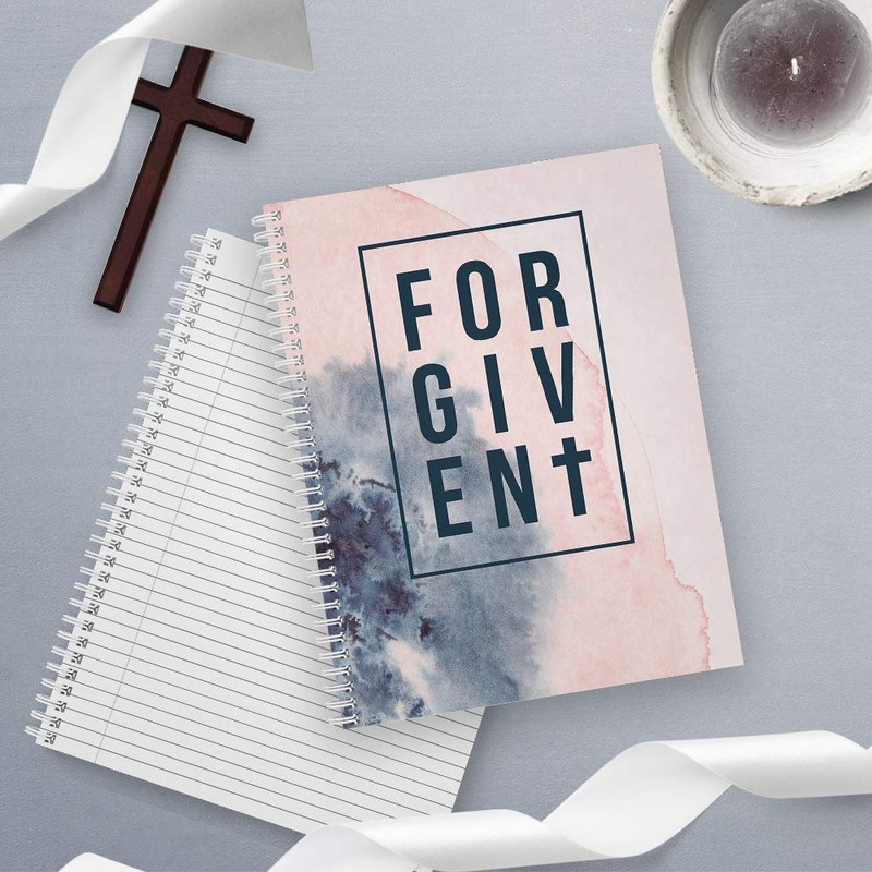 Softcover Forgiven 8.5" x 11" Religious Spiral Notebook/Journal, 120 College Ruled Pages, Durable Gloss Laminated Cover, White Wire-o Spiral. Made in The USA