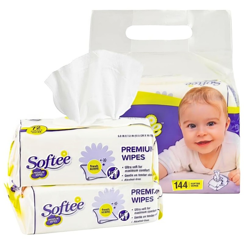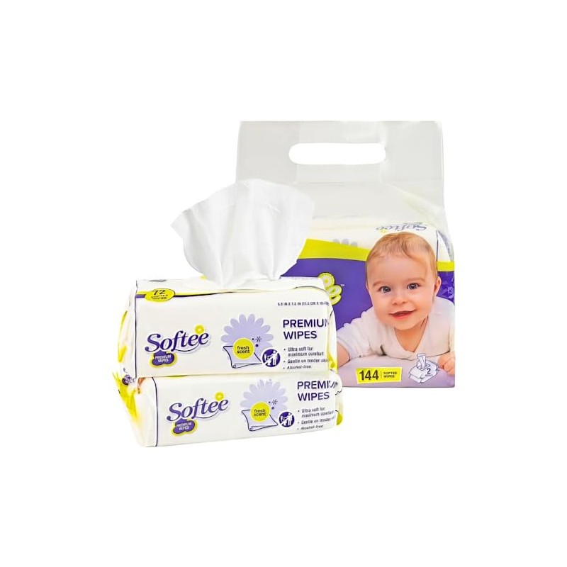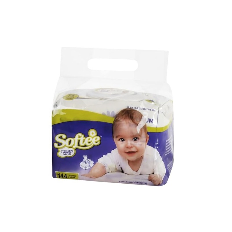 Softee White Polyester Premium Baby Wipes, 1 Pack of 144 (6.8" x 7.2") - Gentle, Hypoallergenic, Perfect for Sensitive Skin